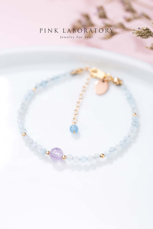 海藍寶薰衣草紫水晶14GF極細手鍊
