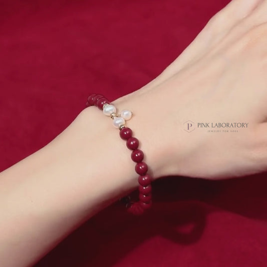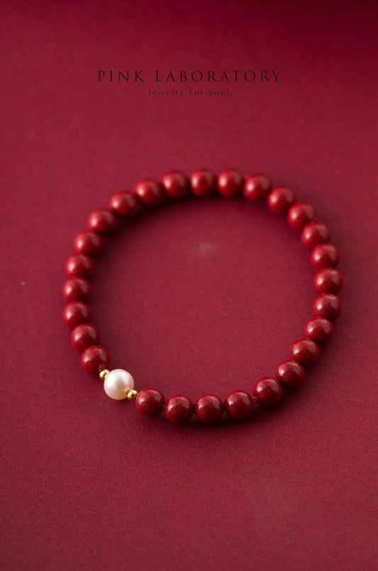 硃砂紫金砂6mm手鍊 | 天然淡水珍珠14KGF手環