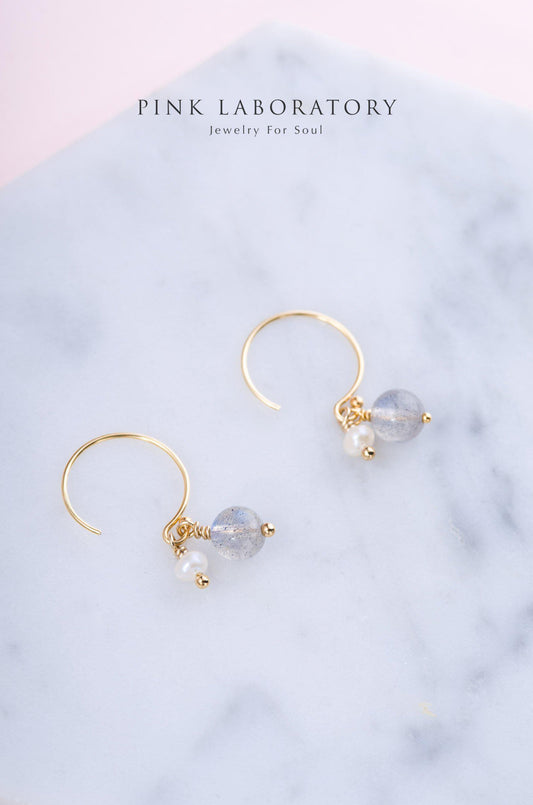 藍光拉長石珍珠耳環 | 14K包金 | 925純銀