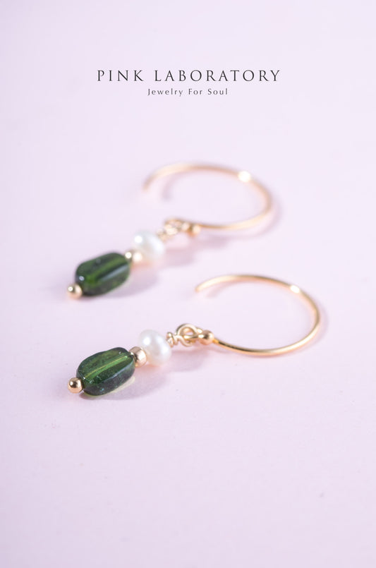 綠碧璽珍珠 | 14K包金 | 純銀耳環