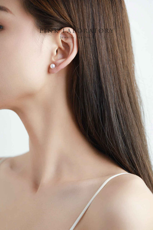 天然淡水珍珠925純銀精鍍亮澤白金耳環