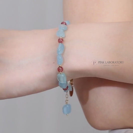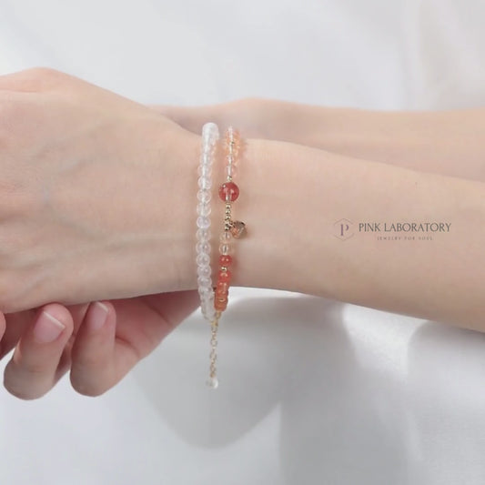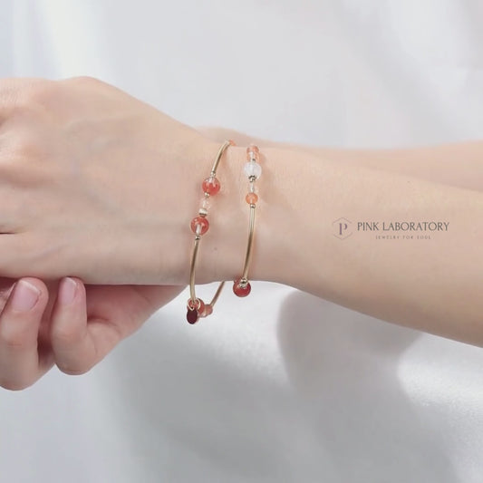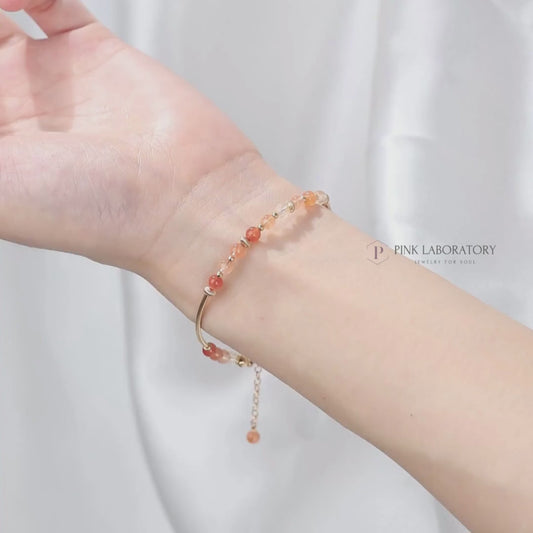 聚寶盆紅兔毛紅髮晶月亮石14KGF手鍊