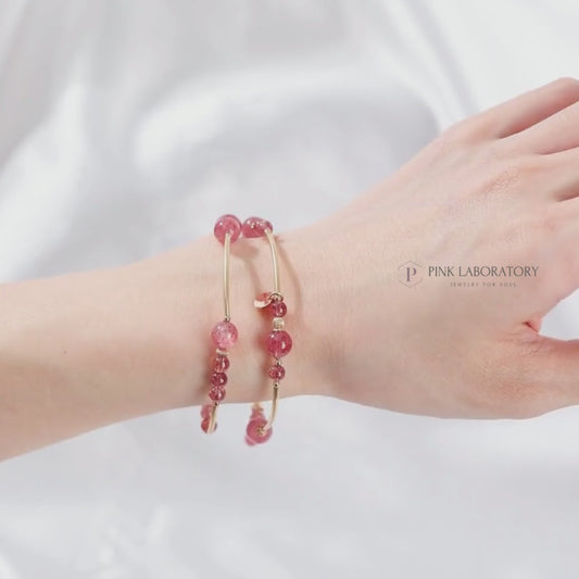 聚寶盆紅兔毛紅髮晶14KGF手鍊