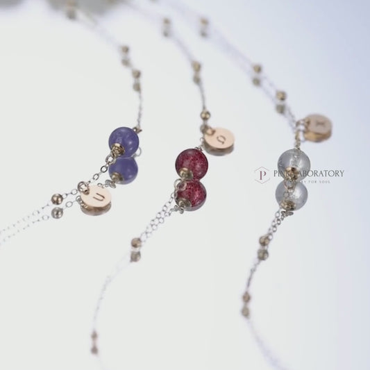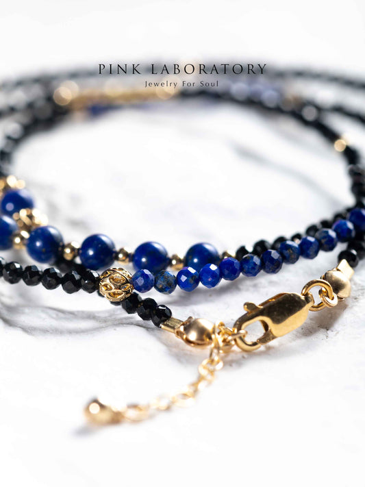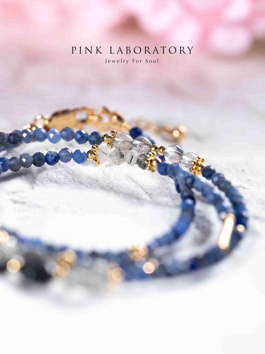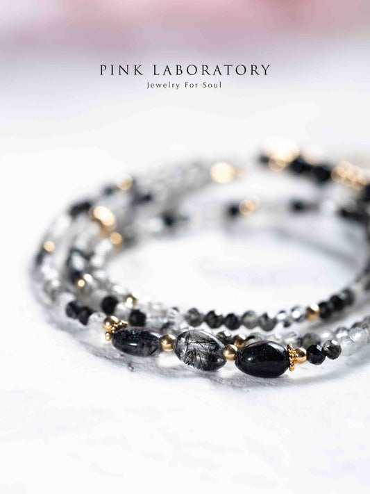 拉長石藍紋石黑髮晶極細三圈手鍊