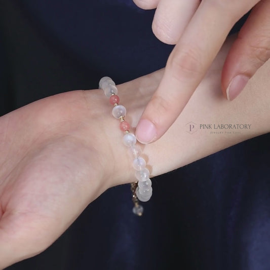 藍光玻璃體月光石鑰匙吊墜 | 925純銀鍍金頸鍊