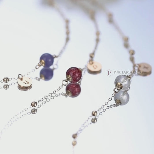堇青石紫鋰輝草莓晶14K鍍金手鍊