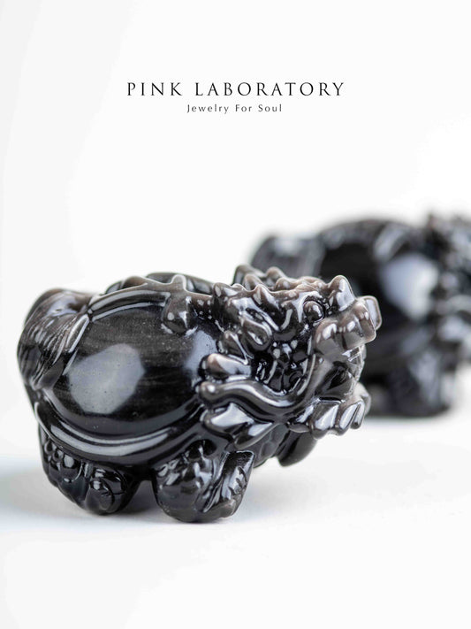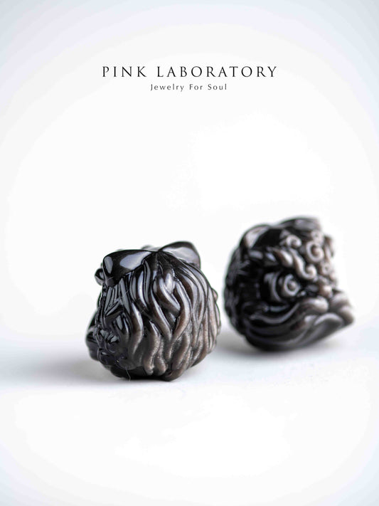 銀曜石招財辟邪醒獅|招財防小人水晶擺件