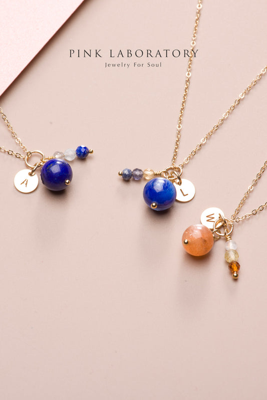 青金石字母項鍊吊墜 | 14K包金頸鍊