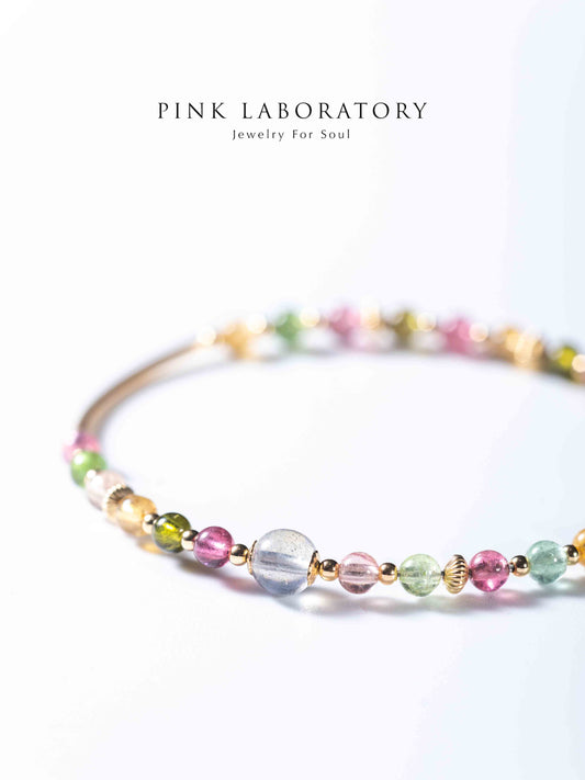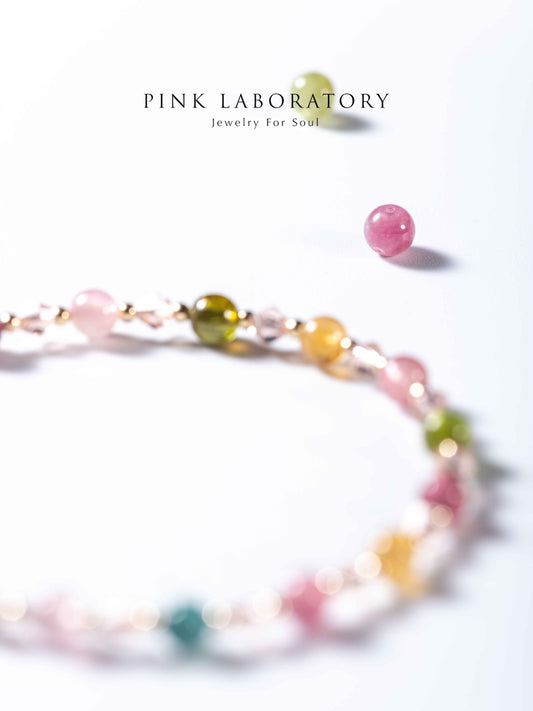 冰種紅紋石愛情水晶14KGF字母手鍊