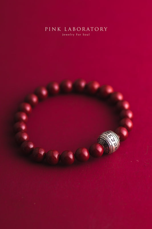 硃砂六字真言護身符手鍊 8mm