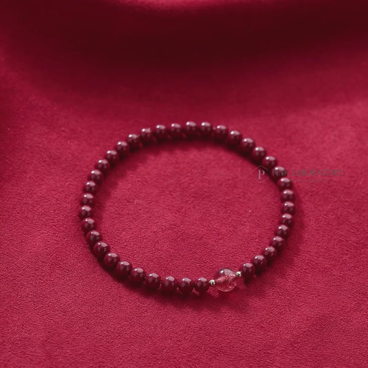 紫金砂硃砂 4mm單圈手鏈 | 石榴石