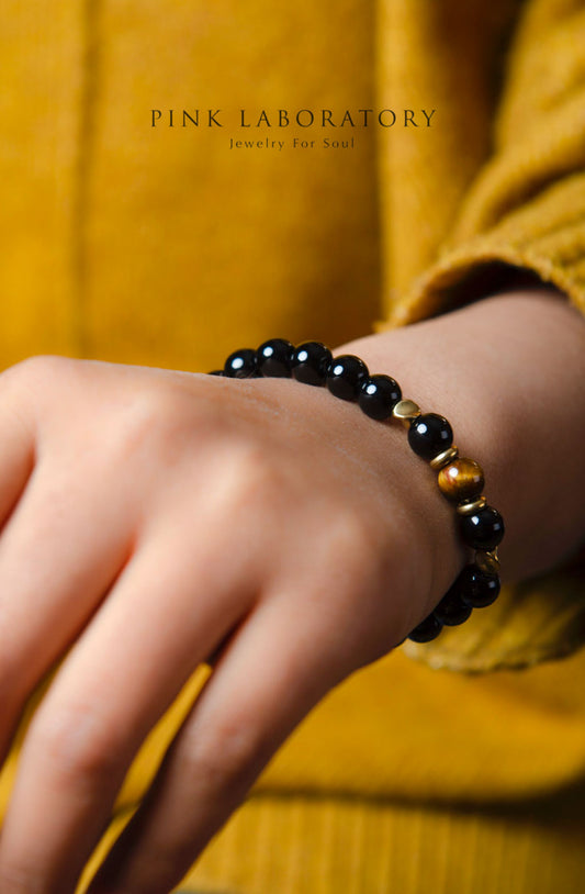 黑瑪瑙虎眼石黃銅手鏈