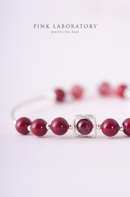 紫金砂硃砂 925純銀手鏈 | 草莓晶