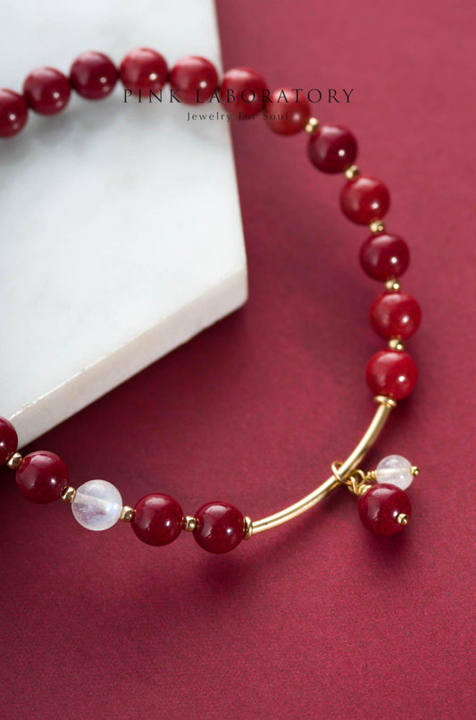 紫金砂硃砂 6mm 單圈手鏈 | 月光石