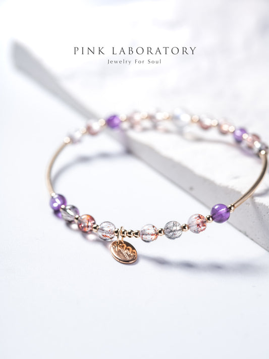 阿魯沙水晶雙圈吊墜14k包金手鍊 | 金太陽石