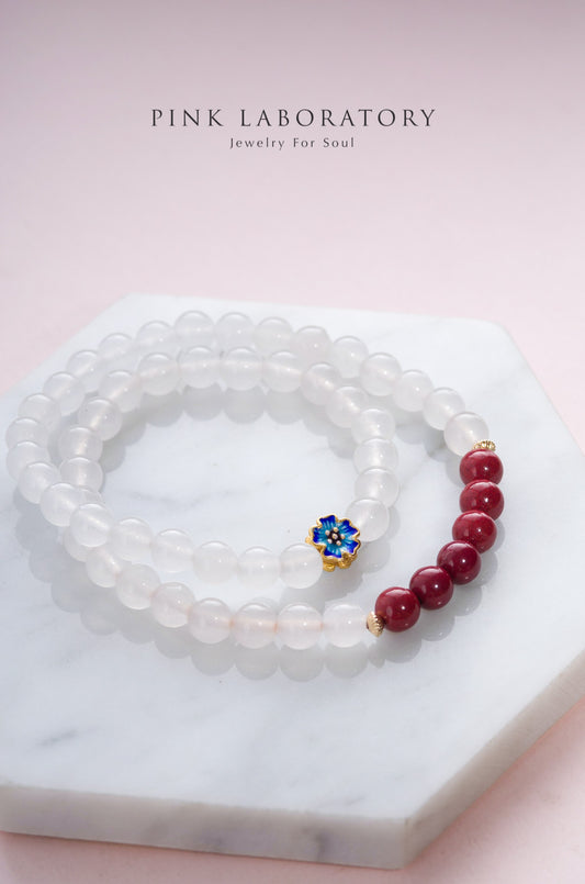 白玉髓硃砂雙圈手鍊 | 925純銀鎏金手鏈