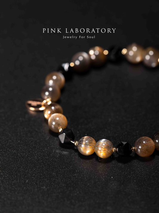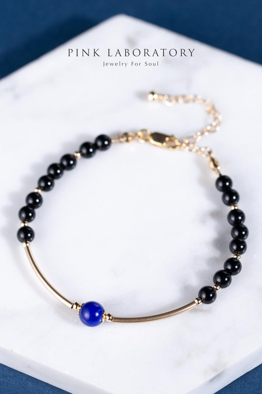 黑骨幹太陽石瑪瑙14KGF手鍊