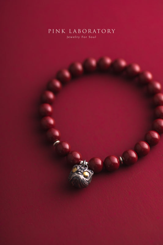 硃砂醒獅辟邪化太歲925純銀手鍊 8mm