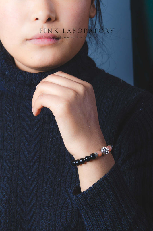 黑瑪瑙太陽石手鍊 | 925純銀泰銀 | 8mm