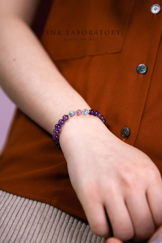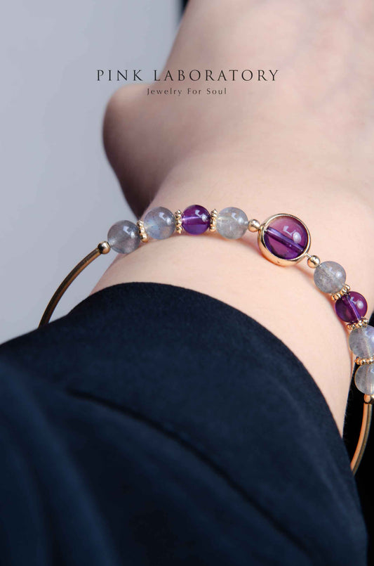 巴西紫水晶14K包金手鍊 | 拉長石草莓晶 | 單圈
