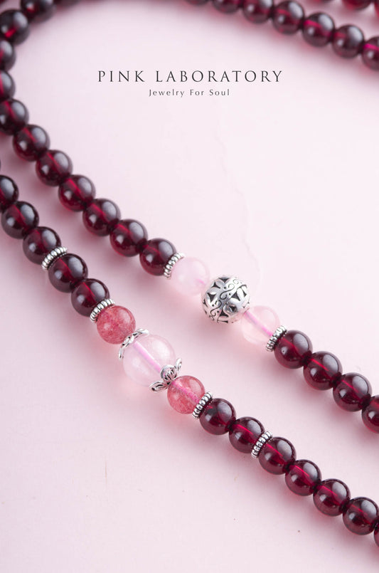 石榴石粉水晶念珠手鍊 | 108佛珠 | 6mm