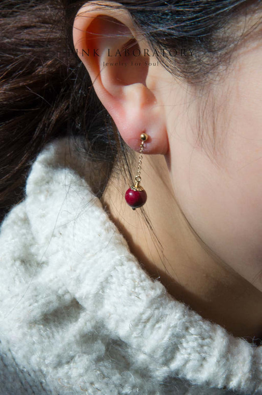 紫金砂硃砂8mm耳釘 | 14KGF耳環