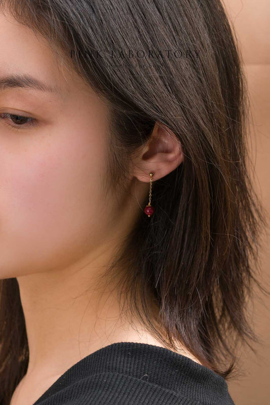 紫金砂硃砂6mm耳釘 | 14KGF耳環