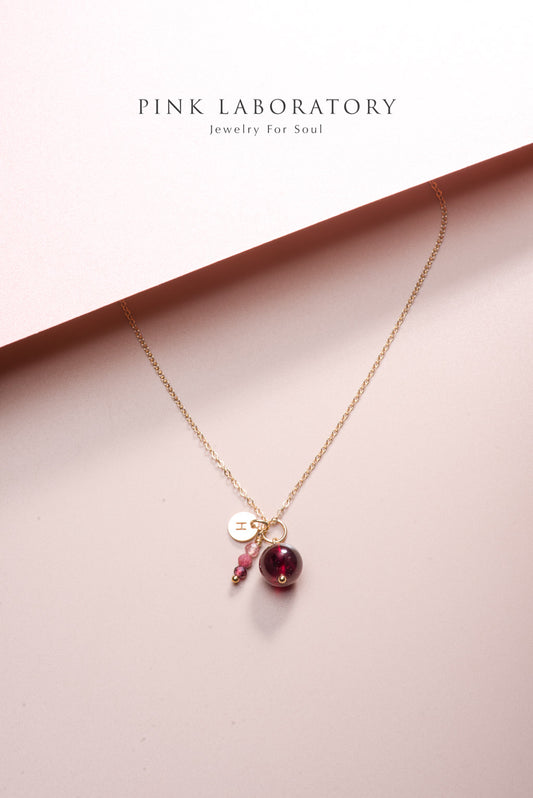 5A 紫牙烏石榴石字母項鍊吊墜 | 14K包金頸鍊