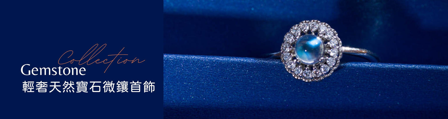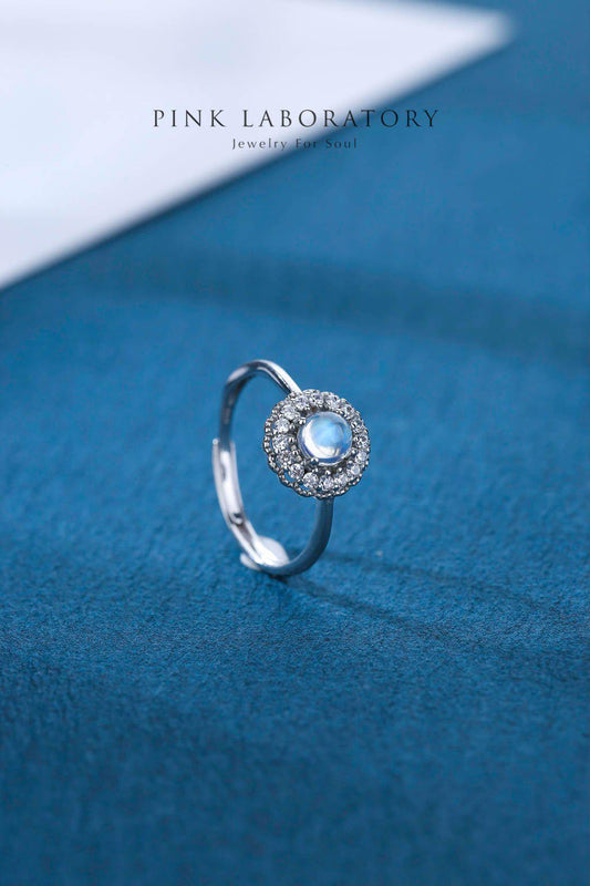 藍光玻璃體月光石戒指 | 925純銀鍍白金