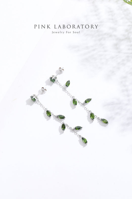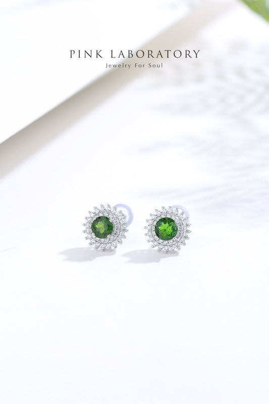 綠透輝石滿鑽耳環 | 925純銀鍍白金耳釘