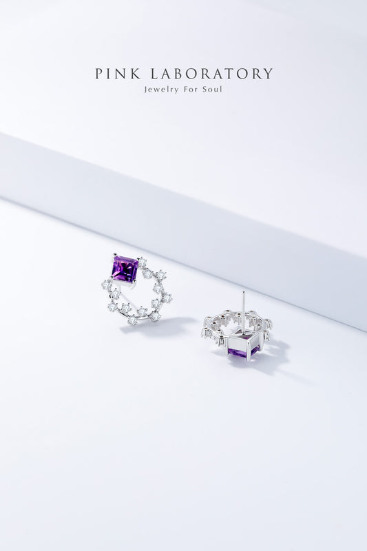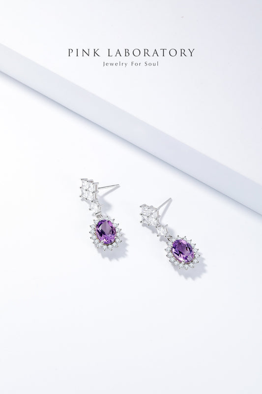 紫水晶星星耳環 | 925純銀鍍白金耳釘