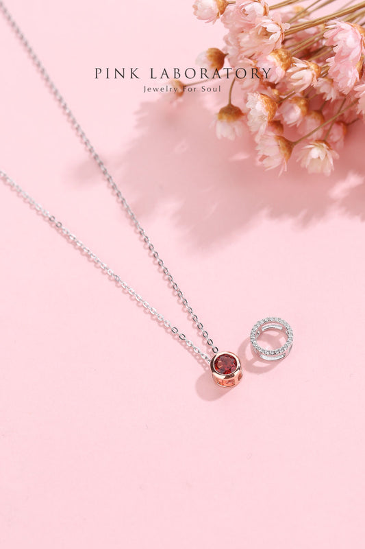 石榴石圓形兩戴吊墜 | 925純銀鍍金頸鍊