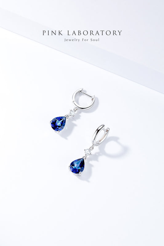 倫敦藍拓帕石耳環 | 925純銀鍍白金