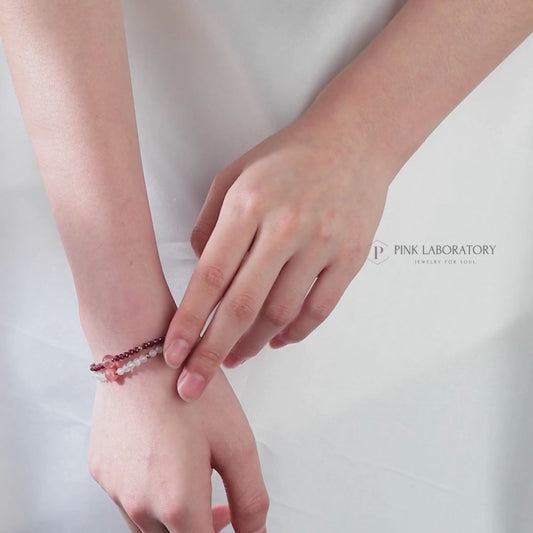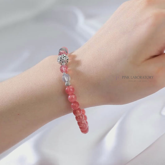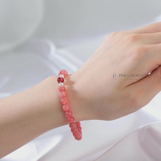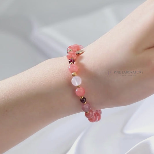 冰種紅紋石草莓晶珍珠14KGF愛情水晶手鍊