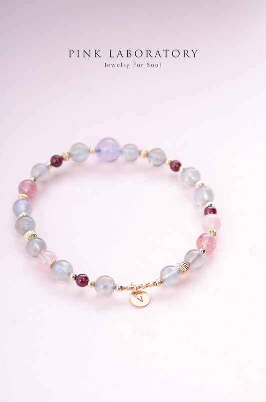 冰種紅紋石月亮石草莓晶14KGF手鍊
