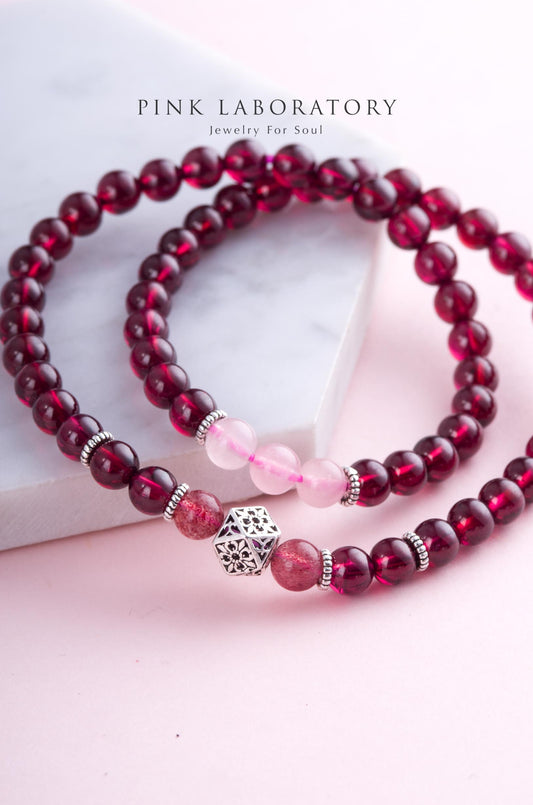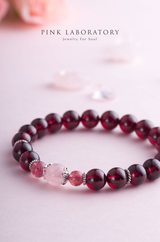 冰種紅紋石草莓晶石榴石14KGF愛情水晶手鍊