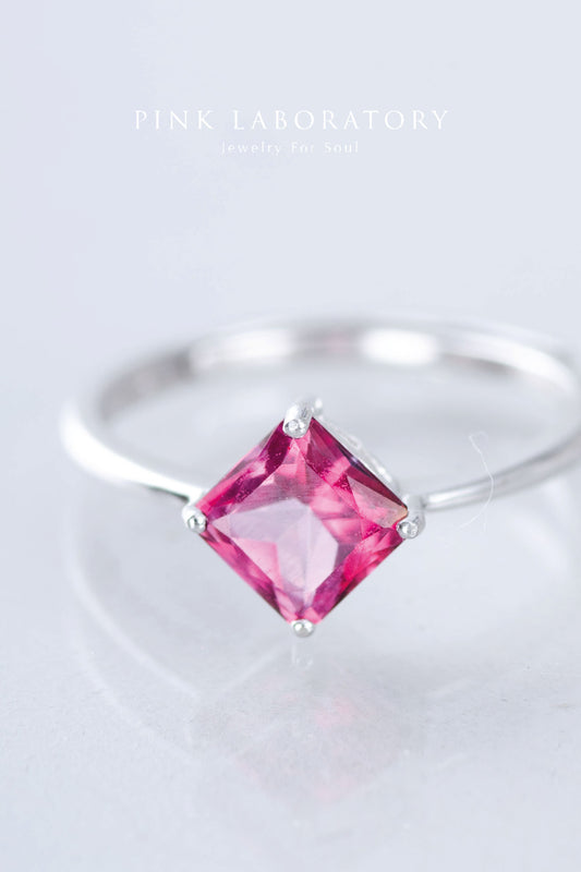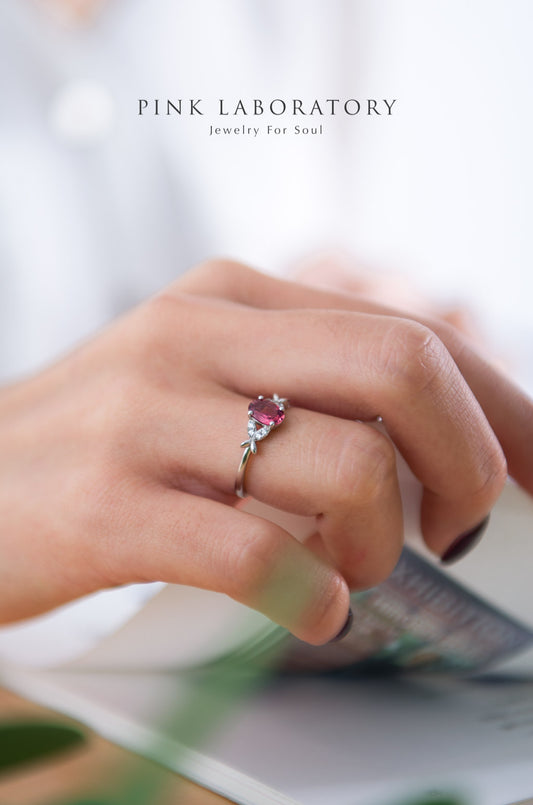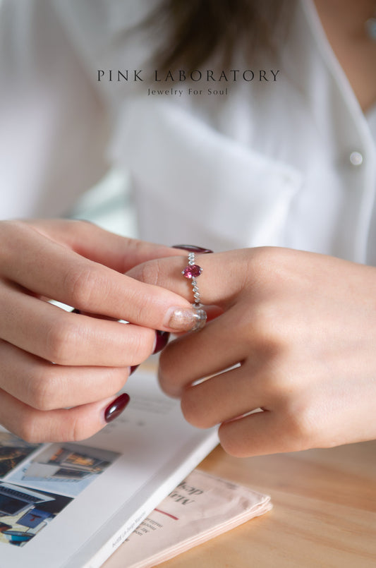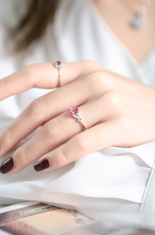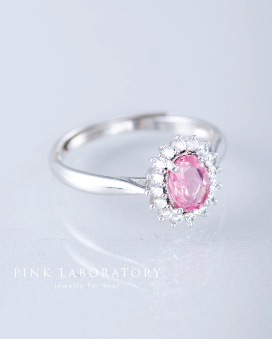 粉紅托帕石925純銀精鍍亮澤白金戒指