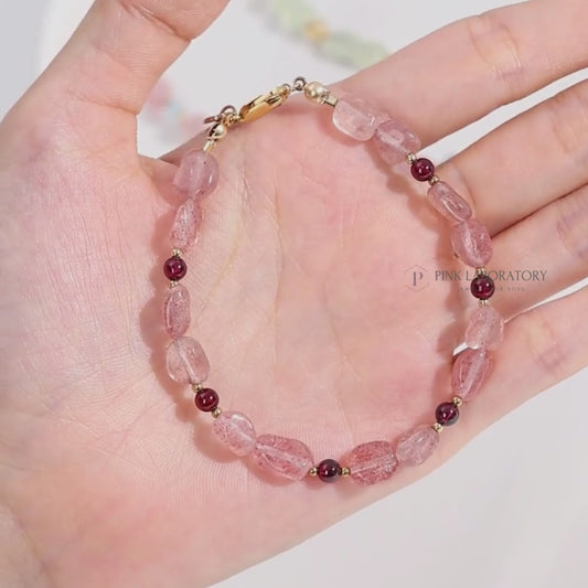 草莓晶珍珠手鍊 | 拉長石 | 石榴石