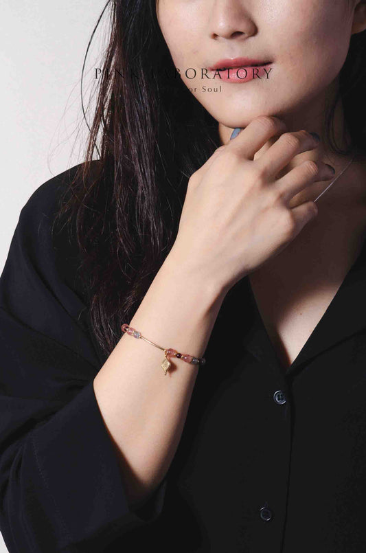 鴿血紅草莓晶紫牙烏6mm手鍊 | 14K鍍金