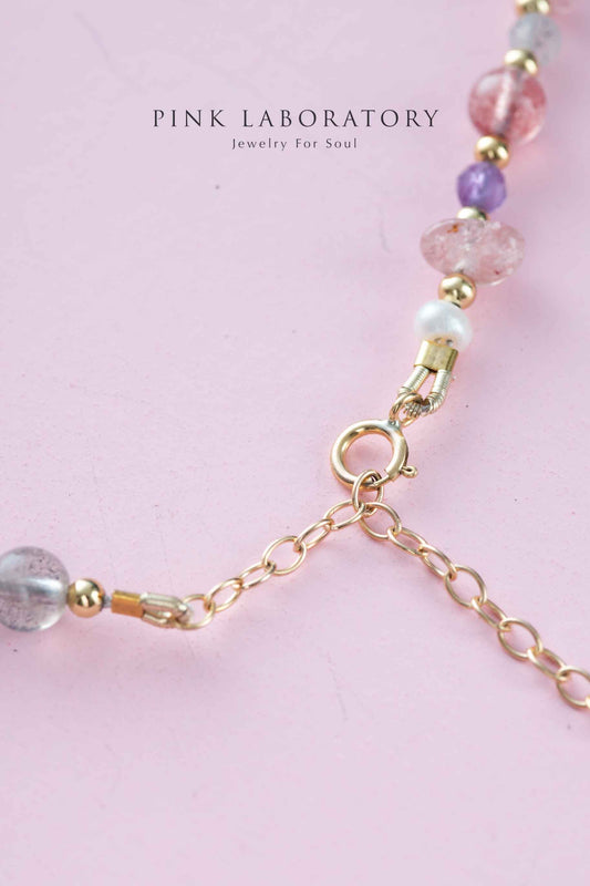 堇青石紫鋰輝草莓晶14K鍍金手鍊